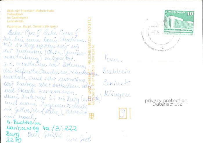 72289279 alte Postkarte Burg Magdeburg Rolandplatz Hermann-Matern-Haus Goethepark postalisch gelaufen Erhaltung siehe scans KatCode: 11110015086015