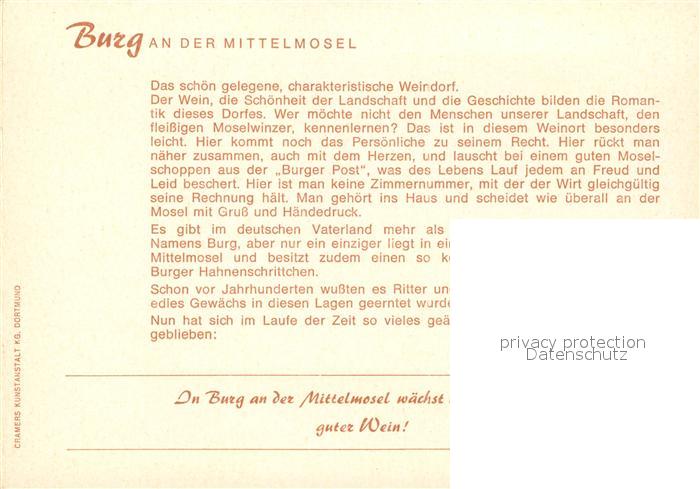 73169471 Burg Mosel Moseltal Weinberge Fliegeraufnahme postalisch nicht gelaufen Werbekarte (keine Postkarte) Erhaltung siehe scans [FriedD77] KatCode: 11110007231014