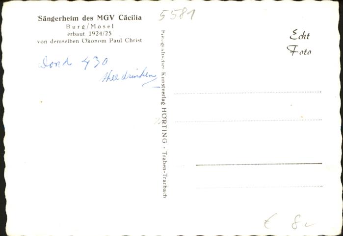 40922004 Burg Mosel Sängerheim MGV Cäcilia * KatCode 11110007231014