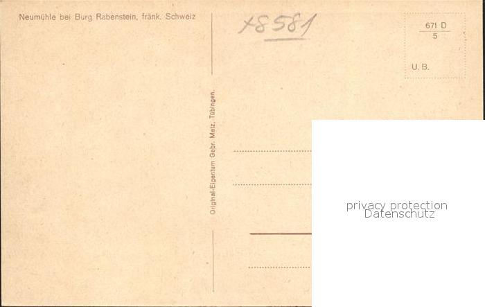 41815293 Burg Rabenstein Oberfranken Neumuehle postalisch nicht gelaufen Erhaltung siehe scans Alte Ansichtskarte Postkarte hz_F Katcode 11110009472111