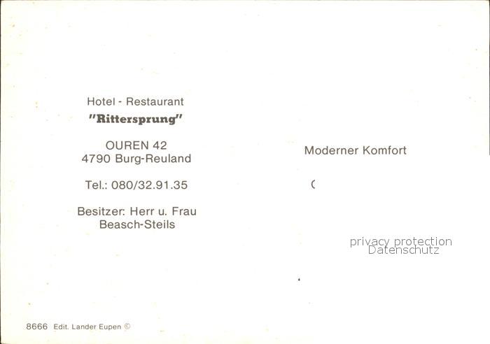 72270581 Burg-Reuland Hotel Restaurant Rittersprung postalisch nicht gelaufen Werbekarte (keine Postkarte) Erhaltung siehe scans KatCode: 11070063003091