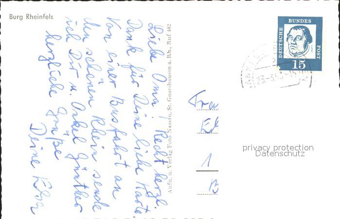 71930281 alte Postkarte Burg Rheinfels Dampfer postalisch gelaufen Erhaltung siehe scans KatCode: 11110007140133
