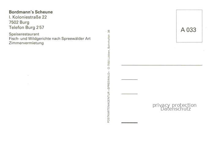 74036500 Burg Spreewald Brandenburg Bordmann’s Scheune Restaurant Terrasse postalisch nicht gelaufen Erhaltung siehe scans [FriedD77] KatCode: 11110012071032