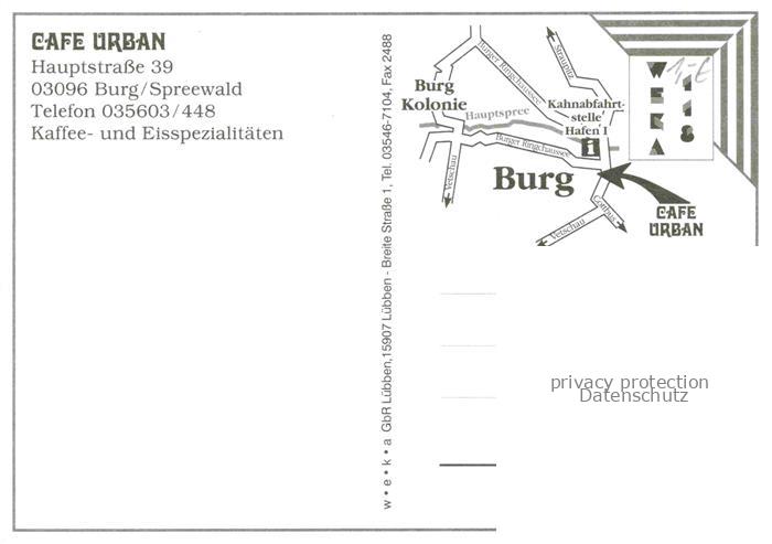 74023599 Burg Spreewald Brandenburg Café Urban Gastraum Burger Trachten postalisch nicht gelaufen Erhaltung siehe scans [FriedD77] KatCode: 11110012071032