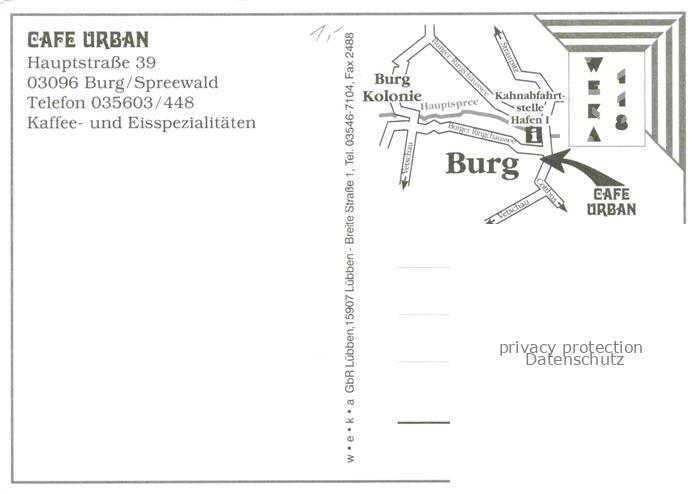 74027665 Burg Spreewald Brandenburg Café Urban Gastraum Trachten postalisch nicht gelaufen Erhaltung siehe scans [FriedD77] KatCode: 11110012071032