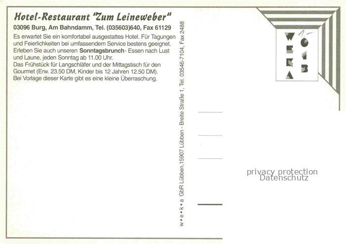 74043976 Burg Spreewald Brandenburg Hotel Restaurant Zum Leineweber Gastraum postalisch nicht gelaufen Erhaltung siehe scans [WerneD78] KatCode: 11110012071032