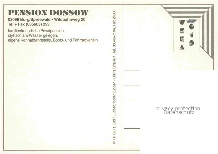 74029232 Burg Spreewald Brandenburg Pension Dossow Wasserstrasse Fremdenzimmer postalisch nicht gelaufen Erhaltung siehe scans [FriedD77] KatCode: 11110012071032