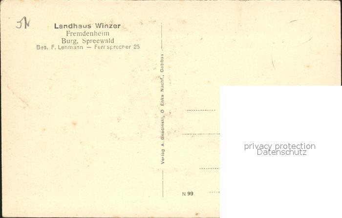 32158797 Burg Spreewald Fremdenheim Landhaus Winzer postalisch nicht gelaufen Erhaltung siehe scans KatCode: 11110012071032
