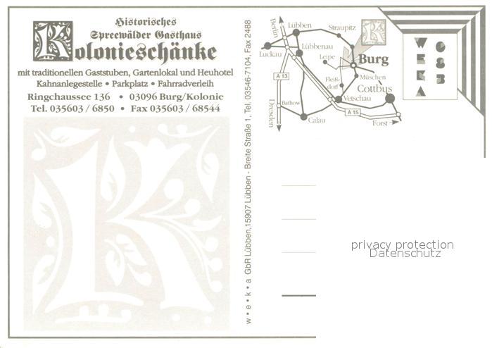 73659573 Burg Spreewald Gasthaus Koloniesch?nke Tracht postalisch nicht gelaufen Erhaltung siehe scans [LiesaD40] KatCode: 11110012071032