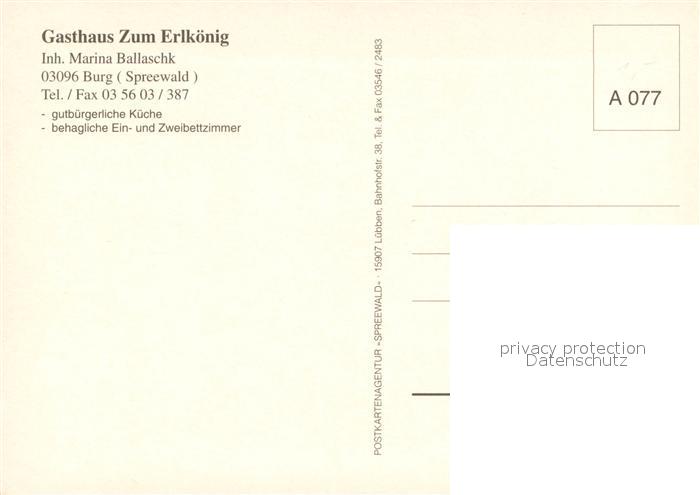 73713346 Burg Spreewald Gasthaus zum Erlkoenig Wasserstrasse Kahnfahrt postalisch nicht gelaufen Erhaltung siehe scans [FriedD77] KatCode: 11110012071032