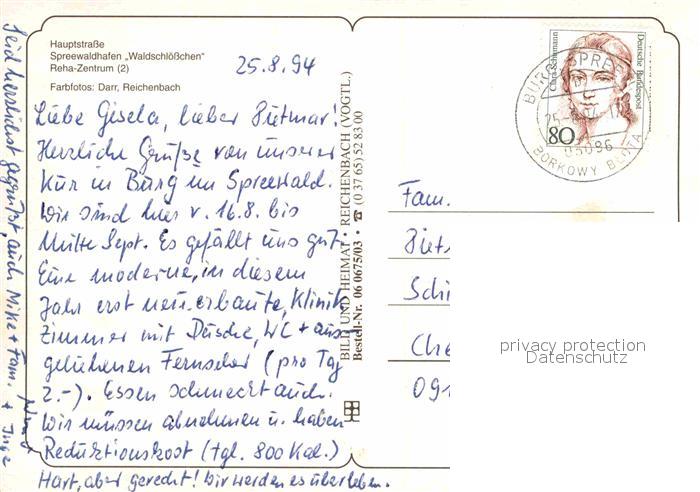 72655625 alte Postkarte Burg Spreewald Hauptstrasse Spreewaldhafen Waldschloesschen postalisch gelaufen Erhaltung siehe scans [AndreD76] KatCode: 11110012071032