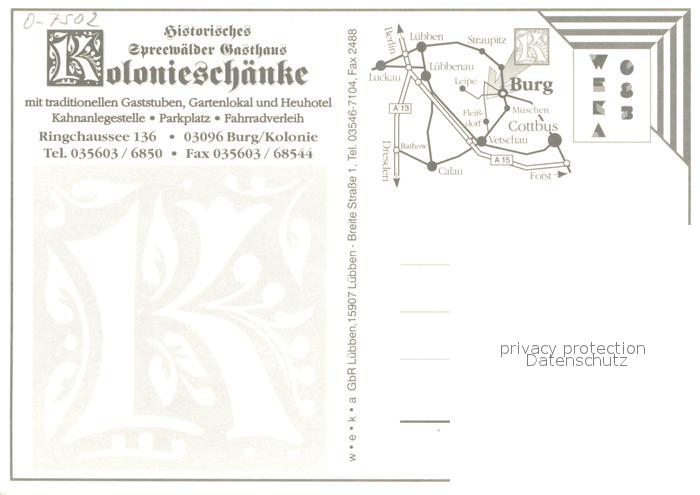 73644548 Burg Spreewald Historisches Spreewaelder Gasthaus Kolonieschaenke Wasserstrasse Bruecke postalisch nicht gelaufen Erhaltung siehe scans [FriedD77] KatCode: 11110012071032