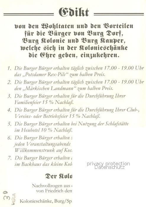 73714188 Burg Spreewald Kolonieschaenke Beschreibung und Informationen postalisch nicht gelaufen Keine Postkarte (siehe scan) Erhaltung siehe scans [LiesaD40] KatCode: 11110012071032