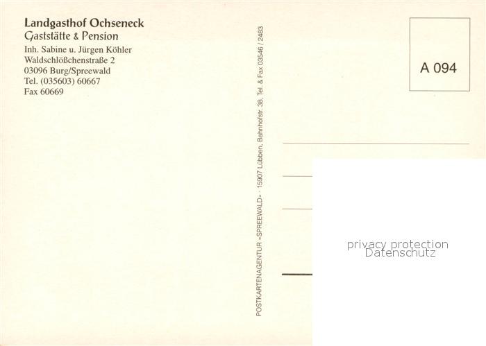 73734586 Burg Spreewald Landgasthof Ochseneck Restaurant Fremdenzimmer postalisch nicht gelaufen Erhaltung siehe scans [FriedD77] KatCode: 11110012071032