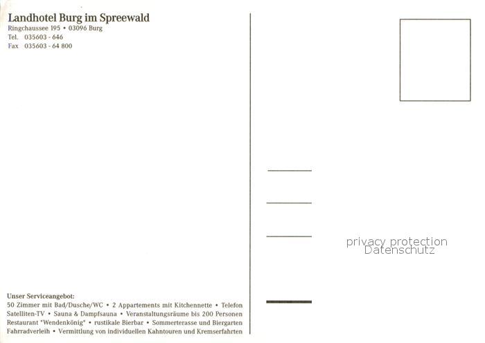 73649102 Burg Spreewald Landhotel Burg im Spreewald Restaurant Wendenkoenig postalisch nicht gelaufen Erhaltung siehe scans [FriedD77] KatCode: 11110012071032