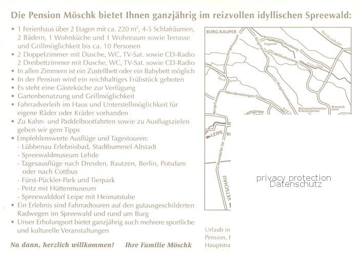 73751936 Burg Spreewald Pension Moeschk Spreewaldpartie postalisch nicht gelaufen Werbekarte (keine Postkarte) Erhaltung siehe scans [WerneD78] KatCode: 11110012071032