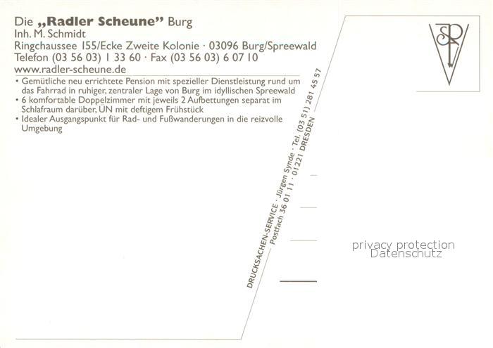 73732413 Burg Spreewald Radlerscheune Gaestehaus Pension Kahnfahrt Waldweg postalisch nicht gelaufen Erhaltung siehe scans [FriedD77] KatCode: 11110012071032