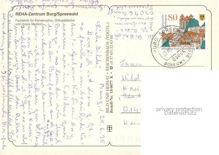 73734524 alte Postkarte Burg Spreewald Reha-Zentrum postalisch gelaufen Fliegeraufnahme Erhaltung siehe scans [FriedD77] KatCode: 11110012071032
