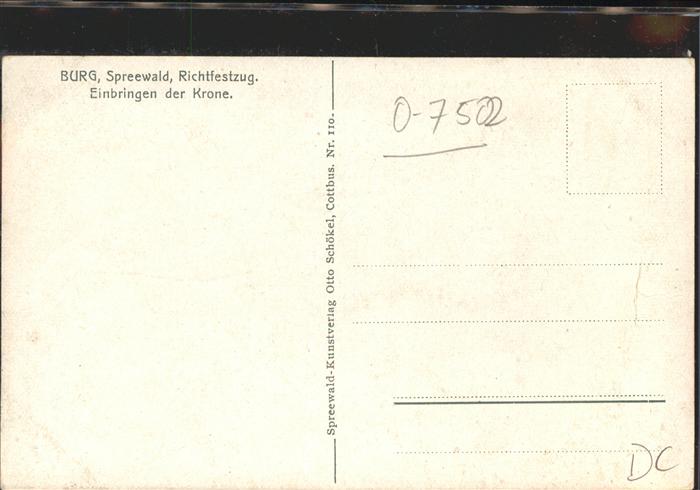 41346922 Burg Spreewald Richtfestzug Einbringen der Krone postalisch nicht gelaufen gute Erhaltung KatCode: 11110012071032