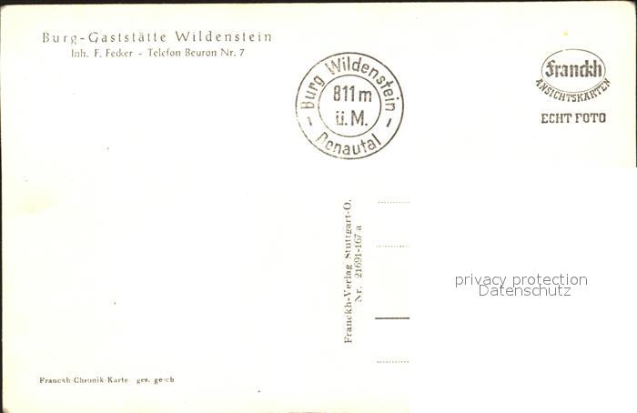 72200363 Burg Wildenstein Restaurant Wildenstein im Donautal postalisch nicht gelaufen Erhaltung siehe scans KatCode: 11110008437005