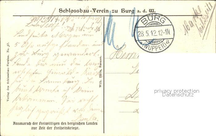 71839876 alte Postkarte Burg Wupper Ausmarsch Freiheitskrieg Schlossbau-Verein postalisch gelaufen Erhaltung siehe scans KatCode: 11110005122000