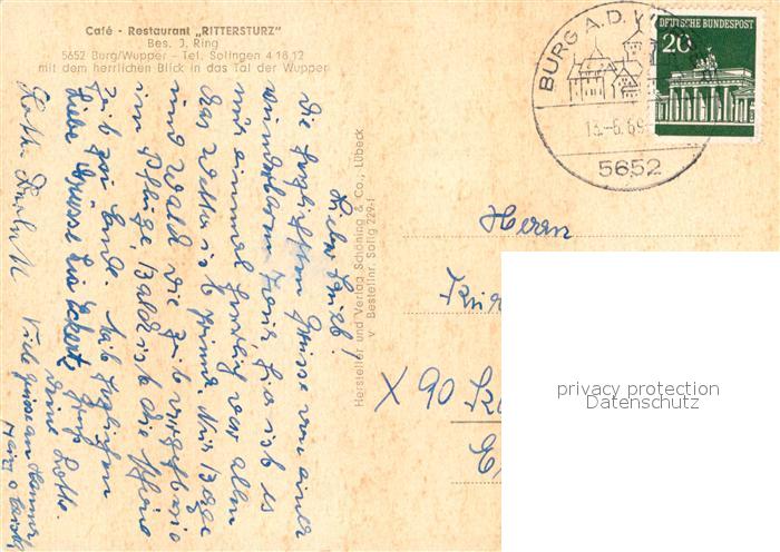 72970282 alte Postkarte Burg Wupper Cafe Restaurant Rittersturz Tal der Wupper postalisch gelaufen Erhaltung siehe scans [FriedD77] KatCode: 11110005122000