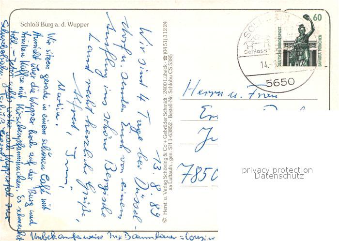 72989682 alte Postkarte Burg Wupper Fliegeraufnahme mit Schloss Burg postalisch gelaufen Erhaltung siehe scans [WerneD78] KatCode: 11110005122000