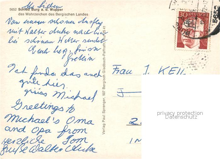 73171820 alte Postkarte Burg Wupper Fliegeraufnahme Schloss postalisch gelaufen Erhaltung siehe scans [NatalD47] KatCode: 11110005122000