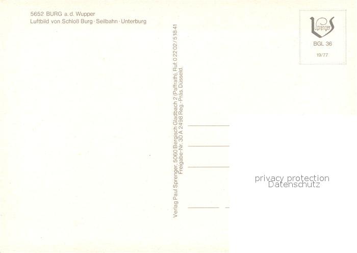 73204218 Burg Wupper Fliegeraufnahme Schloss Burg Seilbahn Unterburg postalisch nicht gelaufen Erhaltung siehe scans [NatalD47] KatCode: 11110005122000