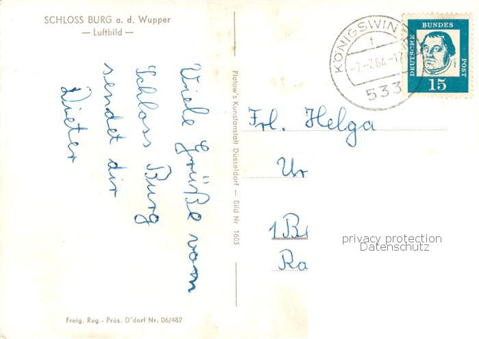 73757956 alte Postkarte Burg Wupper Fliegeraufnahme Schloss Burg postalisch gelaufen Erhaltung siehe scans [WerneD78] KatCode: 11110005122000