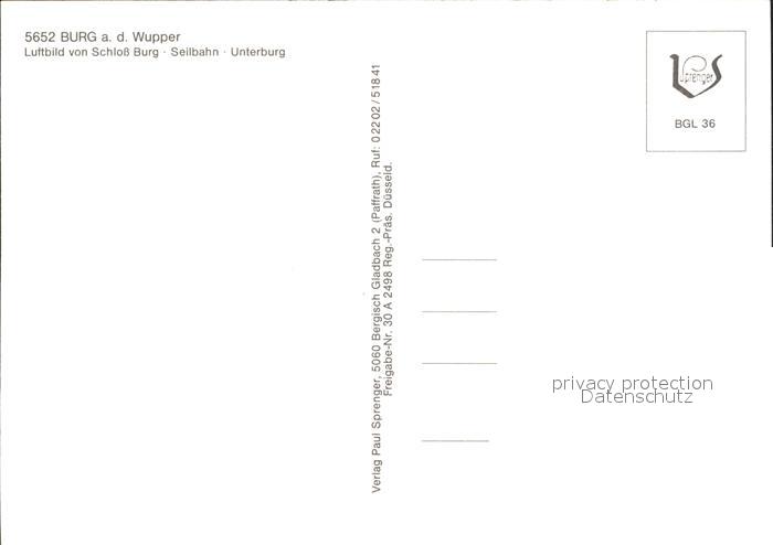 72091643 Burg Wupper Fliegeraufnahme Schloss Seilbahn Unterburg postalisch nicht gelaufen Erhaltung siehe scans KatCode: 11110005122000