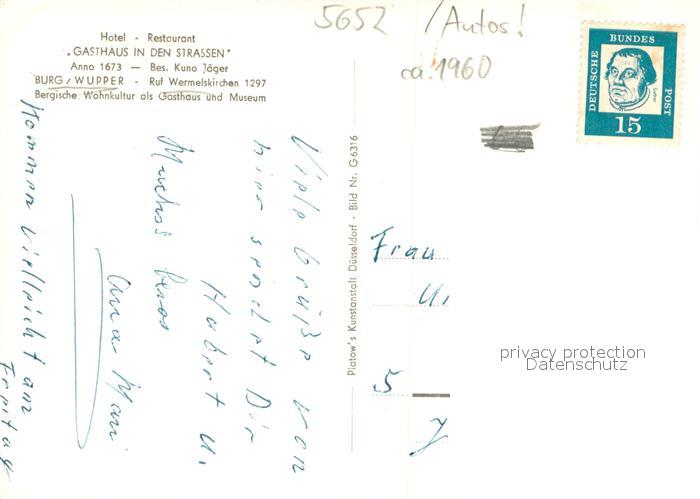 73705629 Burg Wupper Hotel Gasthaus in den Strassen postalisch nicht gelaufen Erhaltung siehe scans [LiesaD40] KatCode: 11110005122000