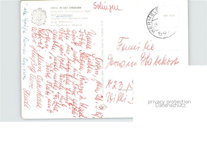 72582604 alte Postkarte Burg Wupper Hotel in der Strassen Restaurant Kamin postalisch gelaufen Erhaltung siehe scans [FriedD77] KatCode: 11110005122000