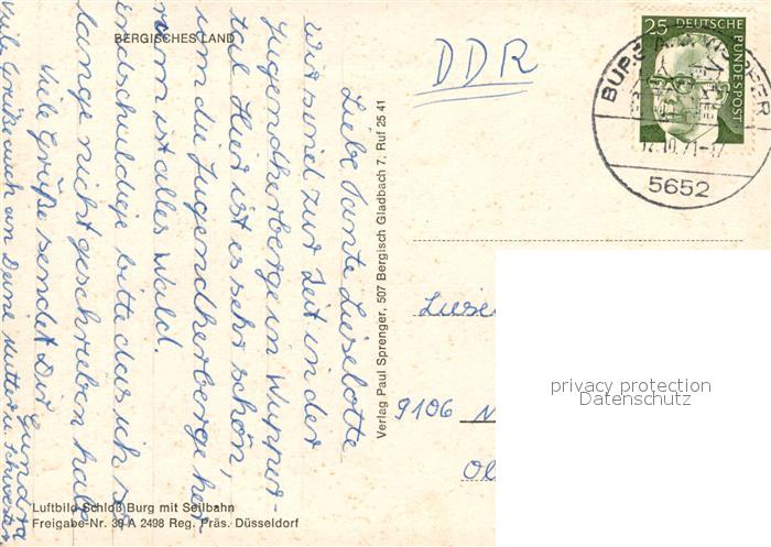 73089245 alte Postkarte Burg Wupper Jugendherberge postalisch gelaufen Erhaltung siehe scans [NatalD47] KatCode: 11110005122000
