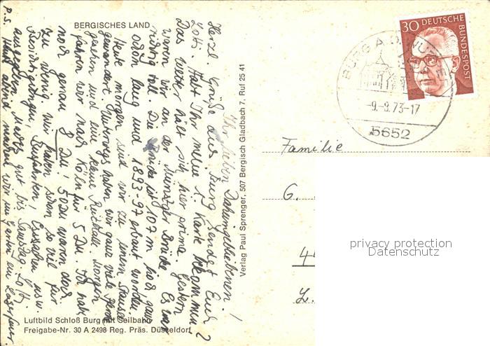 72067740 alte Postkarte Burg Wupper Jugendherberge postalisch gelaufen KatCode: 11110005122000