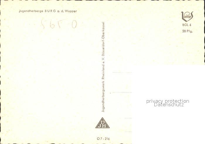 72001831 Burg Wupper Jugendherberge postalisch nicht gelaufen Erhaltung siehe scans KatCode: 11110005122000