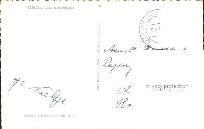 72061626 Burg Wupper Schloss Burg postalisch nicht gelaufen Erhaltung siehe scans KatCode: 11110005122000