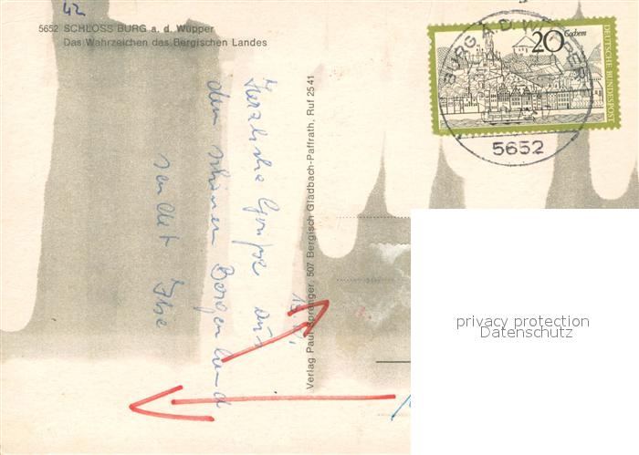 73747667 alte Postkarte Burg Wupper Schloss Burg Fliegeraufnahme postalisch gelaufen Erhaltung siehe scans [WerneD78] KatCode: 11110005122000
