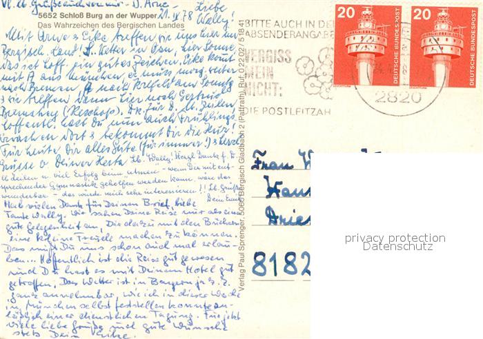 73616736 alte Postkarte Burg Wupper Schloss Burg Fliegeraufnahme postalisch gelaufen Erhaltung siehe scans [WerneD78] KatCode: 11110005122000