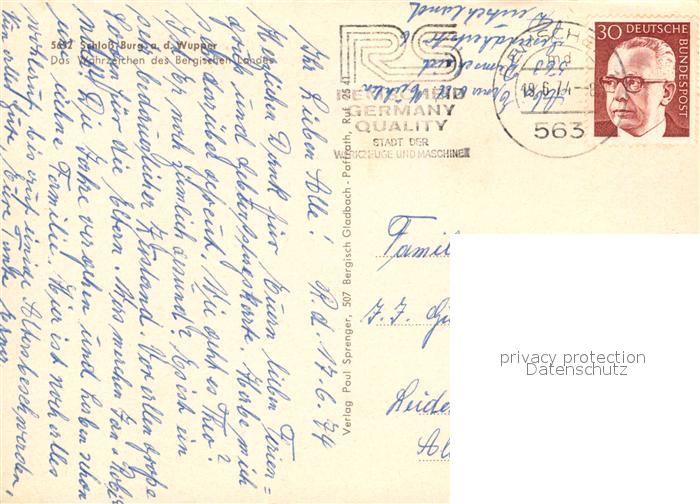 73308282 alte Postkarte Burg Wupper Schloss Burg Fliegeraufnahme postalisch gelaufen Erhaltung siehe scans [WerneD78] KatCode: 11110005122000