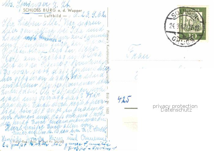 72797680 alte Postkarte Burg Wupper Schloss Fliegeraufnahme postalisch gelaufen Erhaltung siehe scans [NatalD47] KatCode: 11110005122000