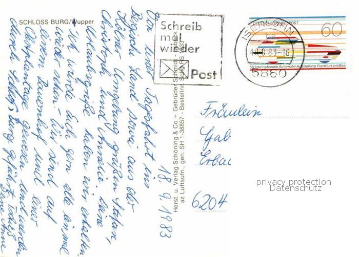 72905740 alte Postkarte Burg Wupper Schloss Fliegeraufnahme postalisch gelaufen Erhaltung siehe scans [FriedD77] KatCode: 11110005122000