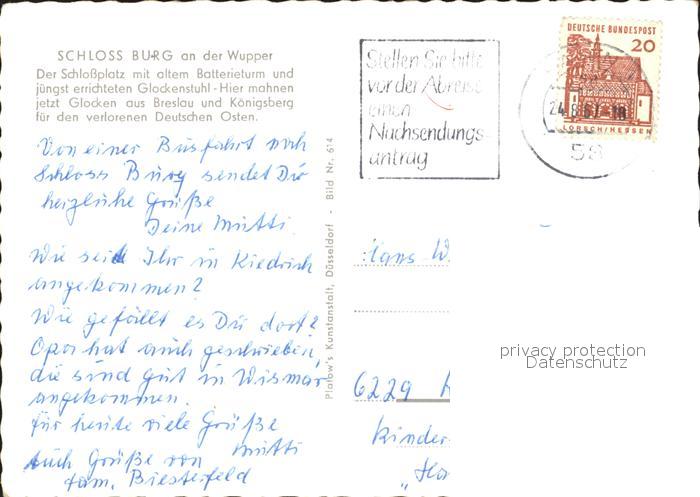 72080119 alte Postkarte Burg Wupper Schloss Schlossplatz Batterieturm Glockenstuhl postalisch gelaufen Erhaltung siehe scans KatCode: 11110005122000