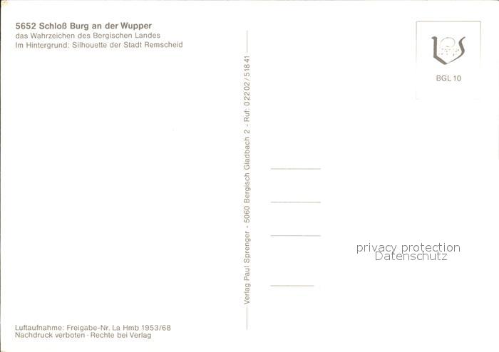 72429146 Burg Wupper Schloss Wahrzeichen des Bergischen Landes Silhouette Stadt Remscheid Fliegeraufnahme postalisch nicht gelaufen Erhaltung siehe scans KatCode: 11110005122000