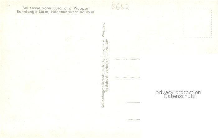 73695651 Burg Wupper Seilsesselbahn Bergisch Land postalisch nicht gelaufen Erhaltung siehe scans [LiesaD40] KatCode: 11110005122000
