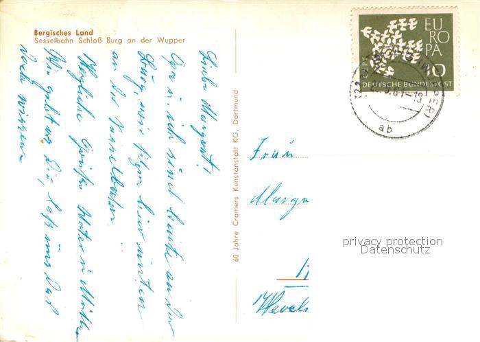 73722093 alte Postkarte Burg Wupper Sesselbahn Schloss Burg an der Wupper postalisch gelaufen Erhaltung siehe scans [WerneD78] KatCode: 11110005122000