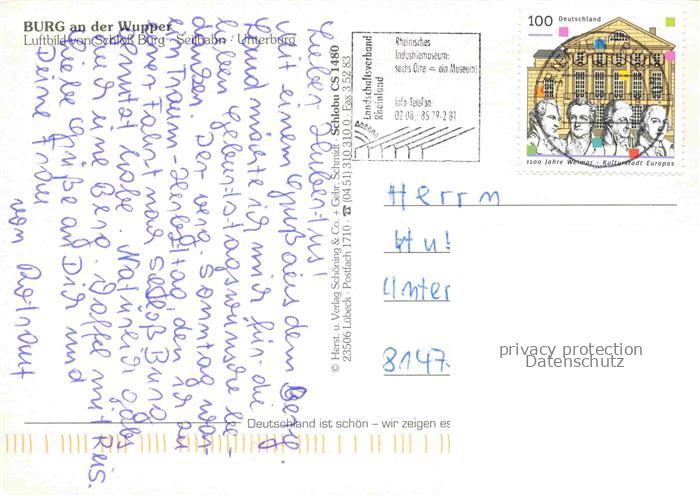 74034362 alte Postkarte Burg Wupper SOLINGEN Panorama Schloss Burg Seilbahn Unterburg postalisch gelaufen Fliegeraufnahme Erhaltung siehe scans [FriedD77] KatCode: 11110005122000