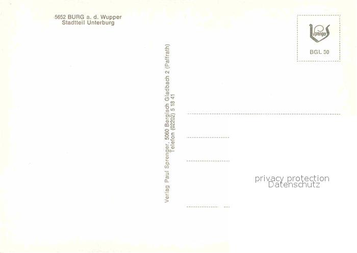 72865405 Burg Wupper Stadtteil Unterburg postalisch nicht gelaufen Erhaltung siehe scans [FriedD77] KatCode: 11110005122000