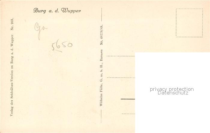 73555473 Burg Wupper postalisch nicht gelaufen Erhaltung siehe scans [PaolaD17] KatCode: 11110005122000