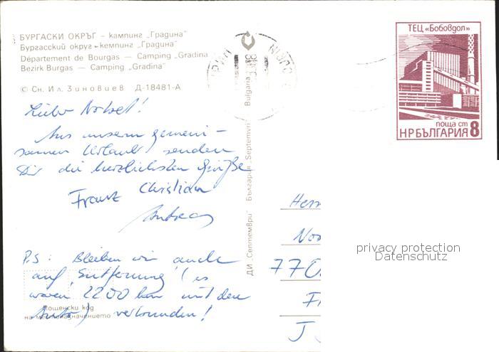 old postcard Burgas Camping Gradina postalisch gelaufen Erhaltung siehe scans